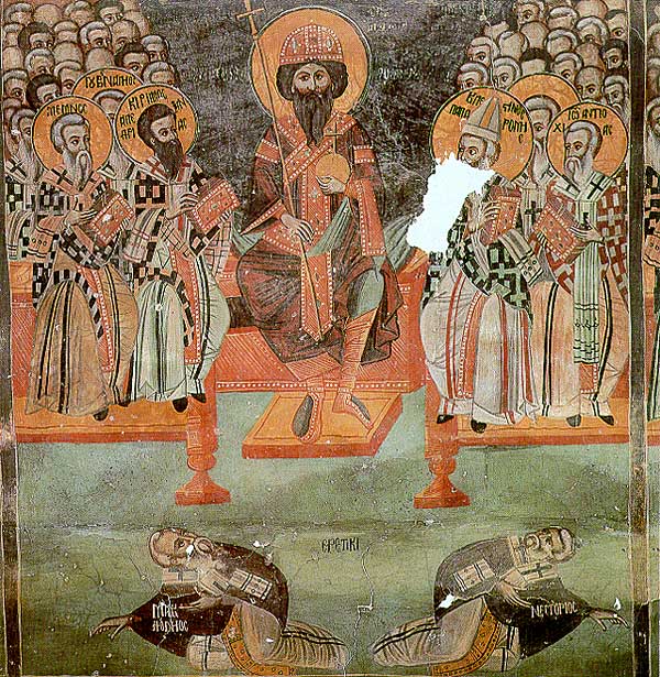 Cyril was born in Alexandria and was first heard of as a young priest. He succeeded his uncle as Patriarch in the year 412 and began his great defence of the classical doctrines of God the Holy Trinity and of Jesus Christ as a unique and single Person within the Trinity. His chief adversary was the Patriarch of Constantinople, Nestorius, who taught that the Christ was both the Jesus who was made flesh in one of his Persons, the Human Person, and also the one who was Divine, a separate Person within the Godhead. The Nestorian party thus rejected the description of Mary as ‘Theotokos’, God-bearer, and also rejected the papal ruling that they comply with the orthodox views of Cyril. The Council of Ephesus was convened in the year 431 to rule on the matter and eventually gave its full support to Cyril, making the word Theotokos the touchstone of Christian orthodoxy. Cyril’s writings give clear and unequivocal statements about the Real Presence of Christ in the eucharist and the position of Mary, the Theotokos, within the doctrine of her Son’s incarnation. Cyril died at Alexandria in the year 444.EH