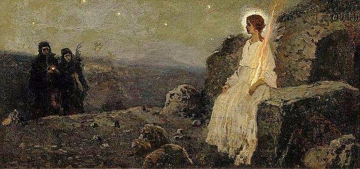 When the sabbath was over, Mary Magdalene, and Mary the mother of James, and Salome bought spices, so that they might go and anoint him. And very early on the first day of the week, when the sun had risen, they went to the tomb. They had been saying to one another, ‘Who will roll away the stone for us from the entrance to the tomb?’ When they looked up, they saw that the stone, which was very large, had already been rolled back. As they entered the tomb, they saw a young man, dressed in a white robe, sitting on the right side; and they were alarmed. But he said to them, ‘Do not be alarmed; you are looking for Jesus of Nazareth, who was crucified. He has been raised; he is not here. Look, there is the place they laid him. But go, tell his disciples and Peter that he is going ahead of you to Galilee; there you will see him, just as he told you.’