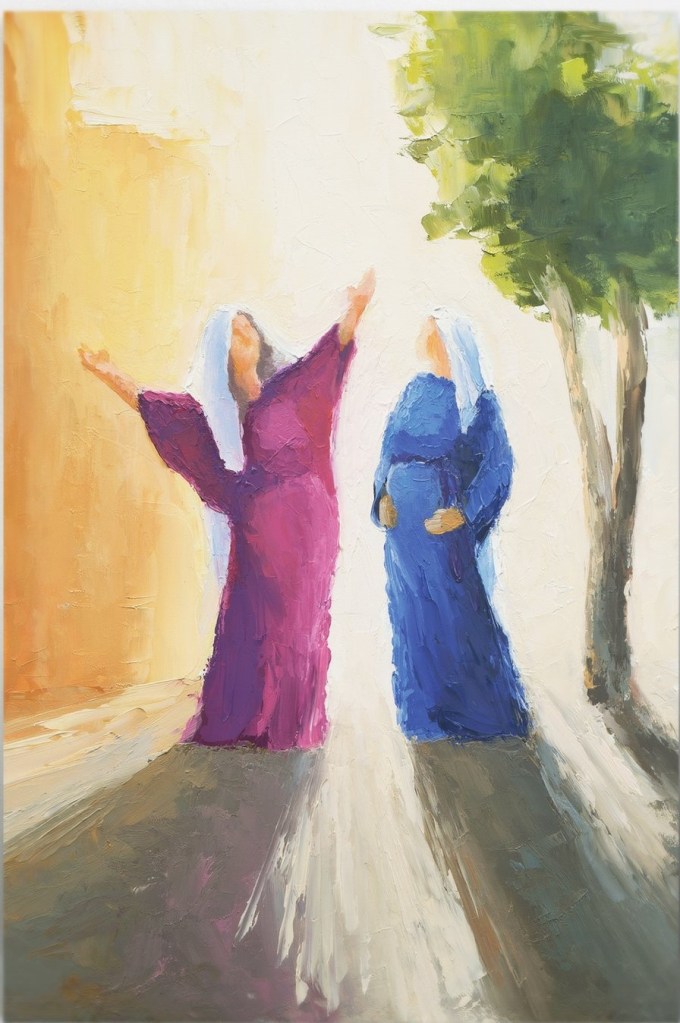 In those days Mary set out and went with haste to a Judean town in the hill country, where she entered the house of Zechariah and greeted Elizabeth. When Elizabeth heard Mary’s greeting, the child leapt in her womb. And Elizabeth was filled with the Holy Spirit and exclaimed with a loud cry, ‘Blessed are you among women, and blessed is the fruit of your womb. And why has this happened to me, that the mother of my Lord comes to me? For as soon as I heard the sound of your greeting, the child in my womb leapt for joy. And blessed is she who believed that there would be a fulfilment of what was spoken to her by the Lord.’