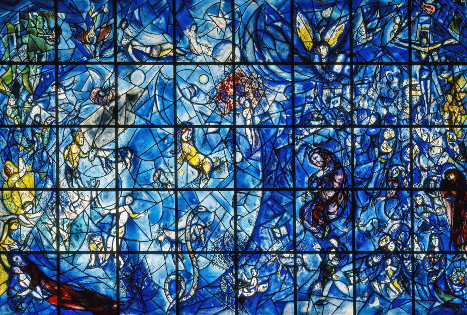 This large free-standing composition in stained glass is a memorial to Dag Hammarskjöld, former Secretary-General of the United Nations, and the fifteen others who lost their lives in a plane crash in Ndola, Africa while on a peace mission. It is a gift from United Nations staff members and Marc Chagall, the French artist who executed the work. A detail of the stained glass composition. 1/Aug/1985. UN Photo/Lois Conner. http://www.unmultimedia.org/photo/