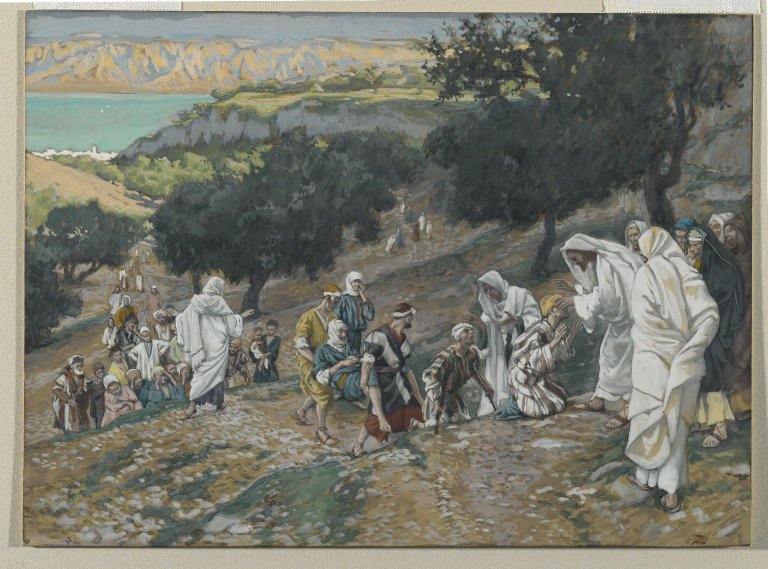 Jesus moved on from there along the shore of the Galilee Sea. He went up a mountain and sat down. Large crowds came to him, including those who were paralyzed, blind, injured, and unable to speak, and many others. They laid them at his feet, and he healed them. So the crowd was amazed when they saw those who had been unable to speak talking, and the paralyzed cured, and the injured walking, and the blind seeing. And they praised the God of Israel.