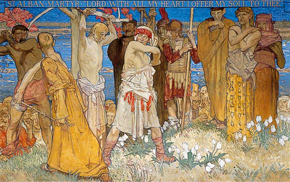 Alban was a soldier in the Roman city of Verulamium (now St Albans in Hertfordshire) who gave shelter to a Christian priest fleeing from persecution, hiding him in his house for several days. Greatly influenced by his devotion to prayer, Alban received instruction from the priest and was converted. When the priest’s hiding-place was discovered, Alban dressed himself in the priest’s cloak and was arrested in his place. Tortured by the Roman authorities, Alban refused to renounce his faith. He was beheaded on this day, probably in the year 250, and so became the first British martyr. His shrine stands today as a place of pilgrimage in the Cathedral and Abbey Church of St Alban. EH