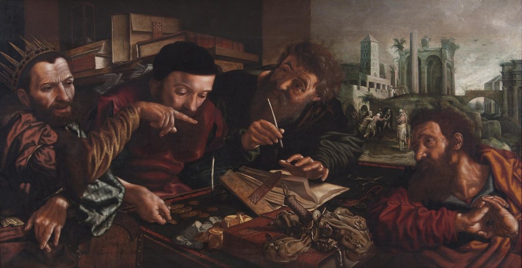 “When that servant went out, he found one of his fellow servants who owed him one hundred coins. He grabbed him around the throat and said, ‘Pay me back what you owe me.’