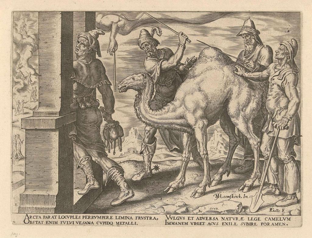Then Jesus said to his disciples, “I assure you that it will be very hard for a rich person to enter the kingdom of heaven. In fact, it’s easier for a camel to squeeze through the eye of a needle than for a rich person to enter God’s kingdom.”